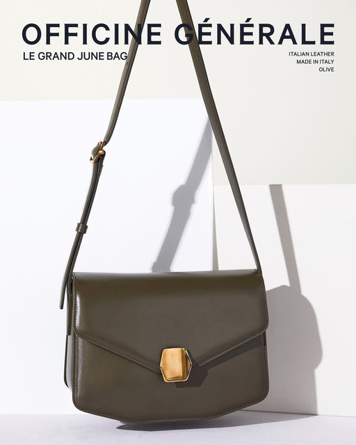 With no fashion statement and no belonging to an epoch, this "neoclassical" signature bag, like Officine Générale's PAP collections, will endure through seasons and eras. Its shape, design, and the quality of its jewelry and leatherwork will ensure that it stands up to any period of fashion and its eras.